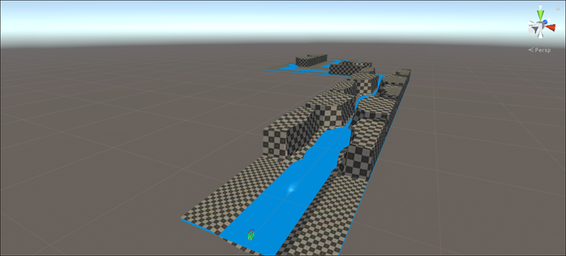 The first thing we worked on was the flow of the river being generated. That was done by using tiles facing a certain direction and connecting to each other.