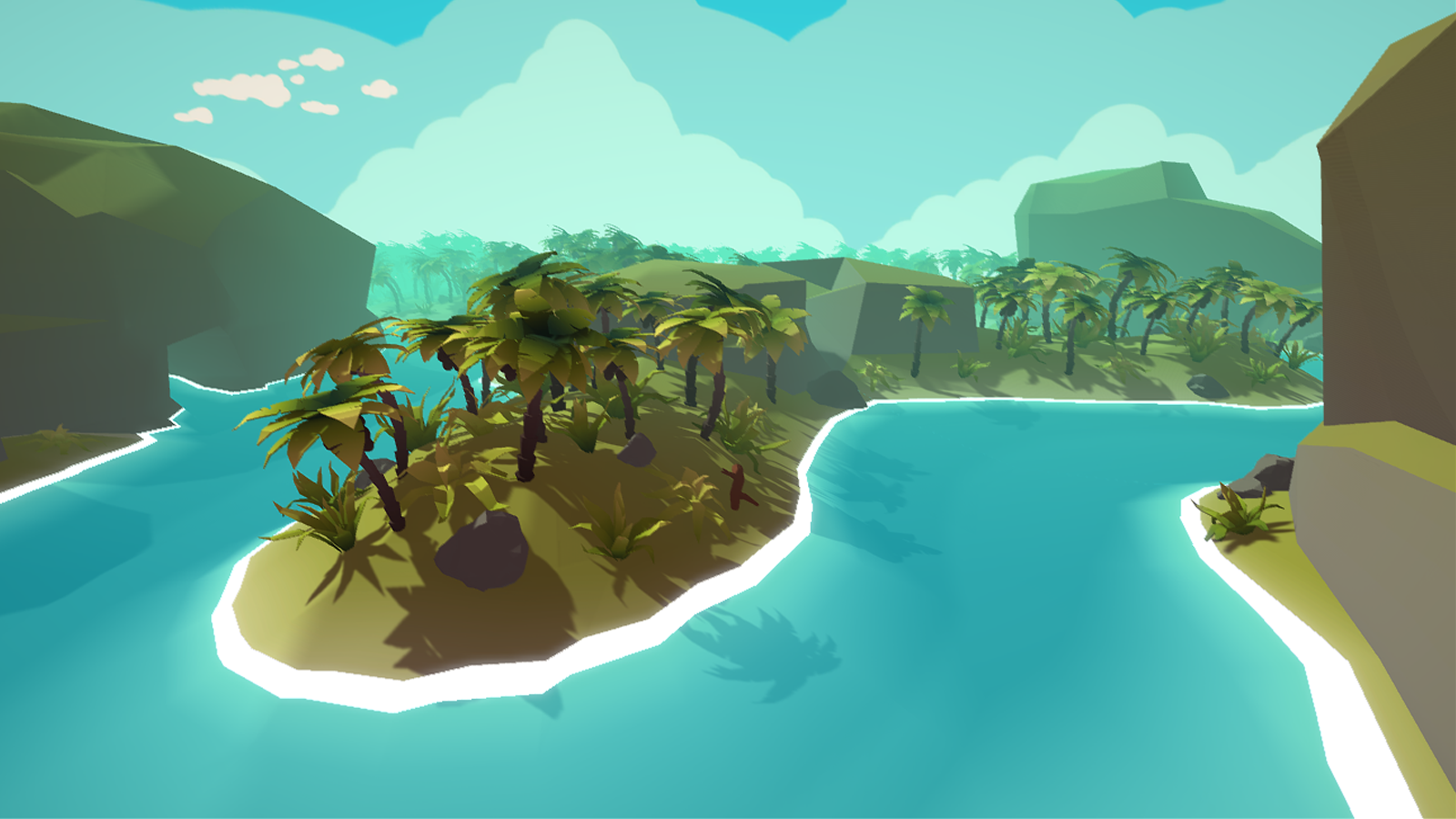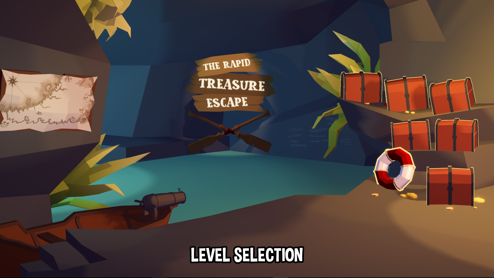 The Rapid Treasure Escape is a two player local coop racing game with a twist. Players are encouraged to share one controller to steer a rowing boat through an obstacle course.
